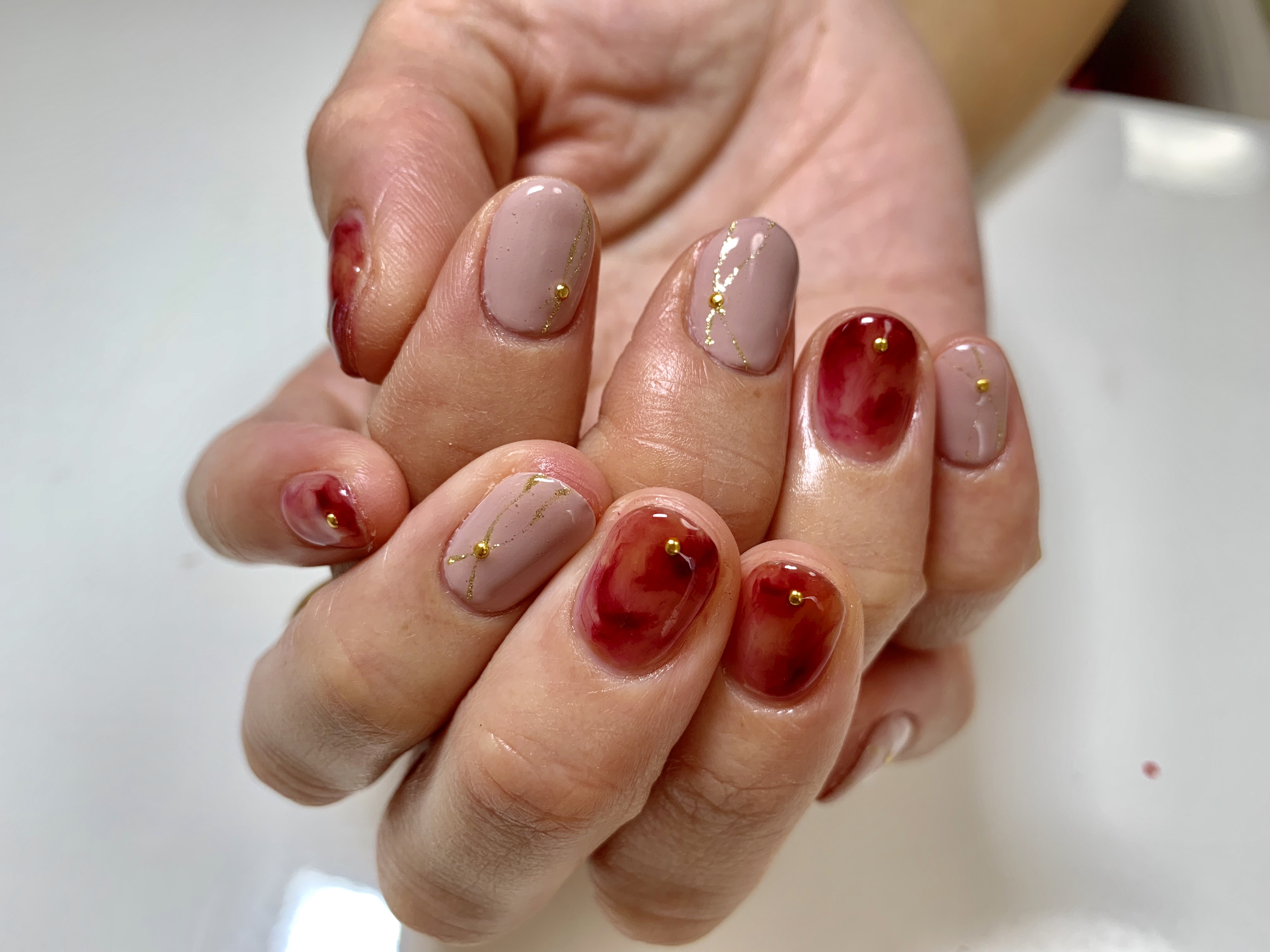 この秋はボルドーがほんとに人気でした。 いつものべっこうネイルもボルドーカラーでオリジナルな気分です。